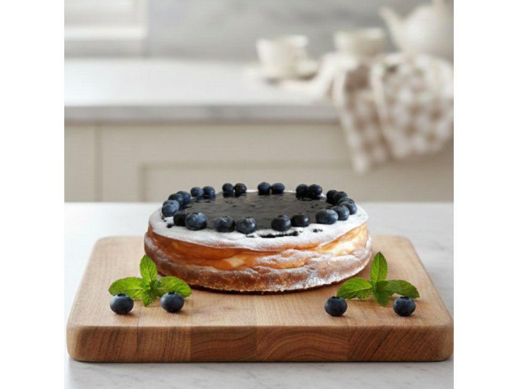 Korpus z máslových sušenek a másla,smetanovo sýrový krém,borůvkový rozvar a čerstvé borůvky.