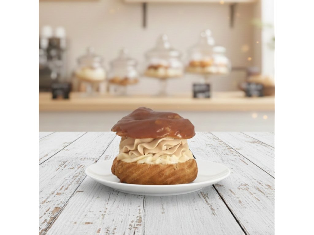 1 ks/85 Kč Odpalované těsto,žloutkový-vanilkový krém,karamelová šlehačka,karamel.