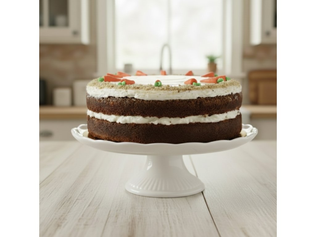 Vláčný mrkvový korpus naplněný krémem ze smetanového sýra a másla.Marcipánová dekorace